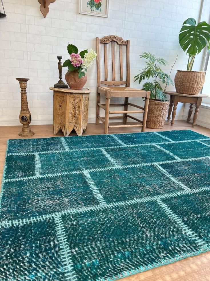 ¤ªÞ¯Íî¤Ê¥ª¡¼¥Ð¡¼¥À¥¤¥é¥° Deep Green Patchwork Rug Ìó177¡ß132
