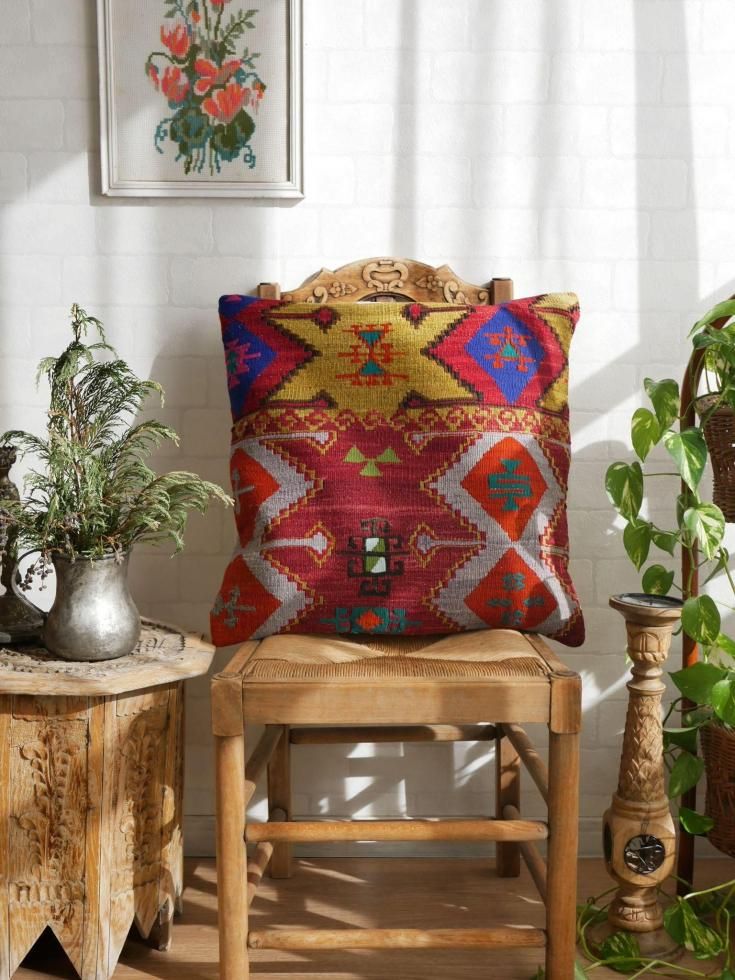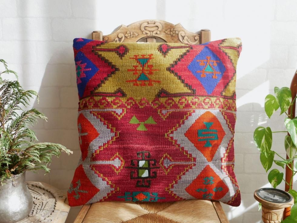 ヴィンテージターキッシュキリム Emirdağ クッションカバー 約50×50cm