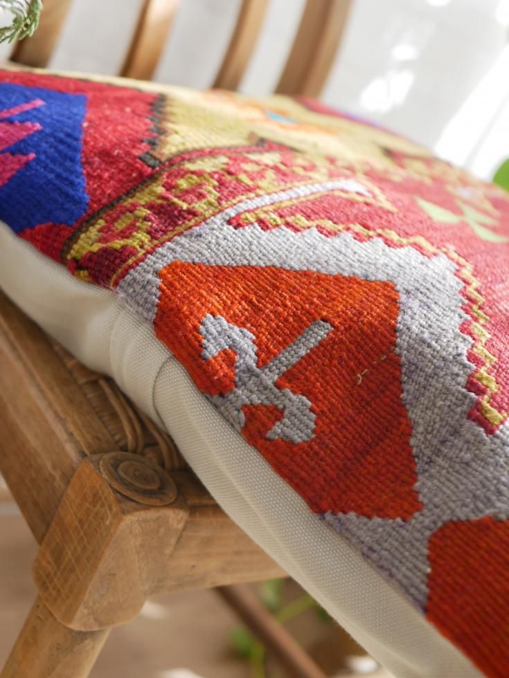 ●本品は洗濯済みのキリムまたは絨毯を使用していますが、キリムや絨毯はユーズド品であるためシミなどがある場合がございます。ご了承ください。